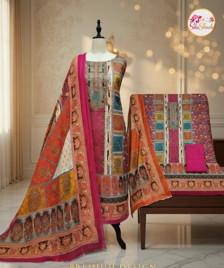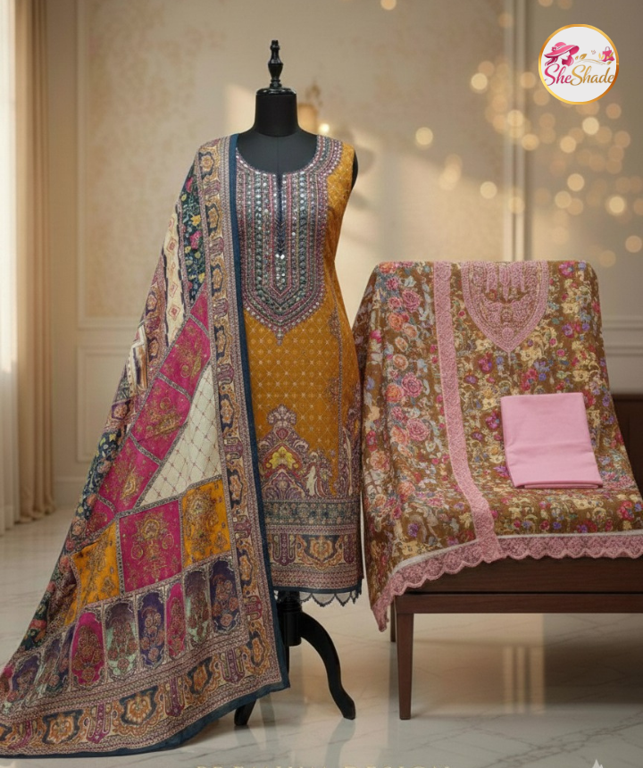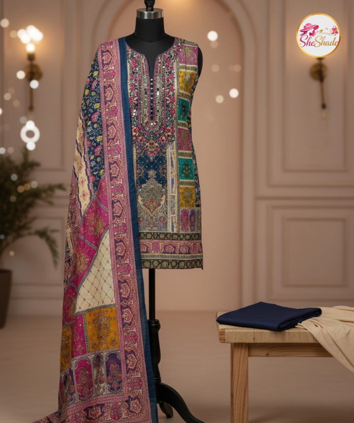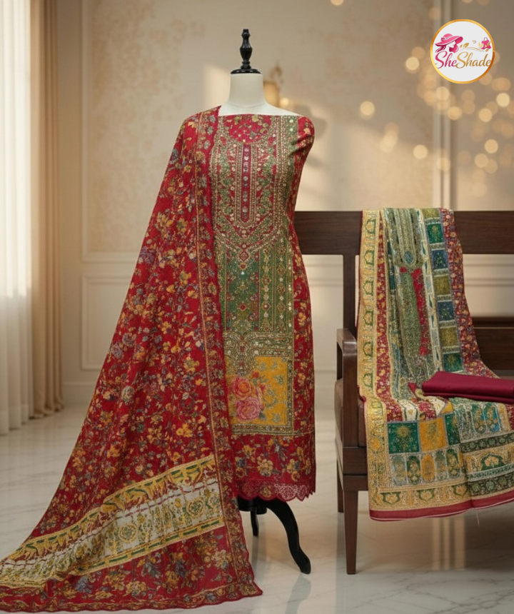 Premium unstitched fabrics curated for the modern woman. Design your own silhouette with our breathable cottons and elegant silks.